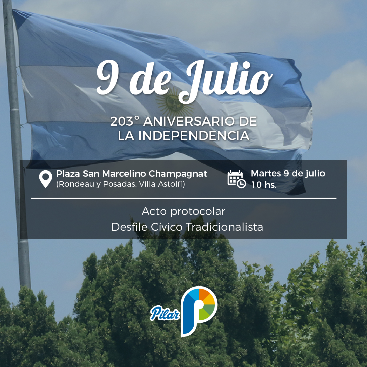El municipio de Pilar invita a la comunidad a participar del acto conmemorativo por el 203° aniversario de la Independencia, que se llevará a cabo este martes 9 de julio.