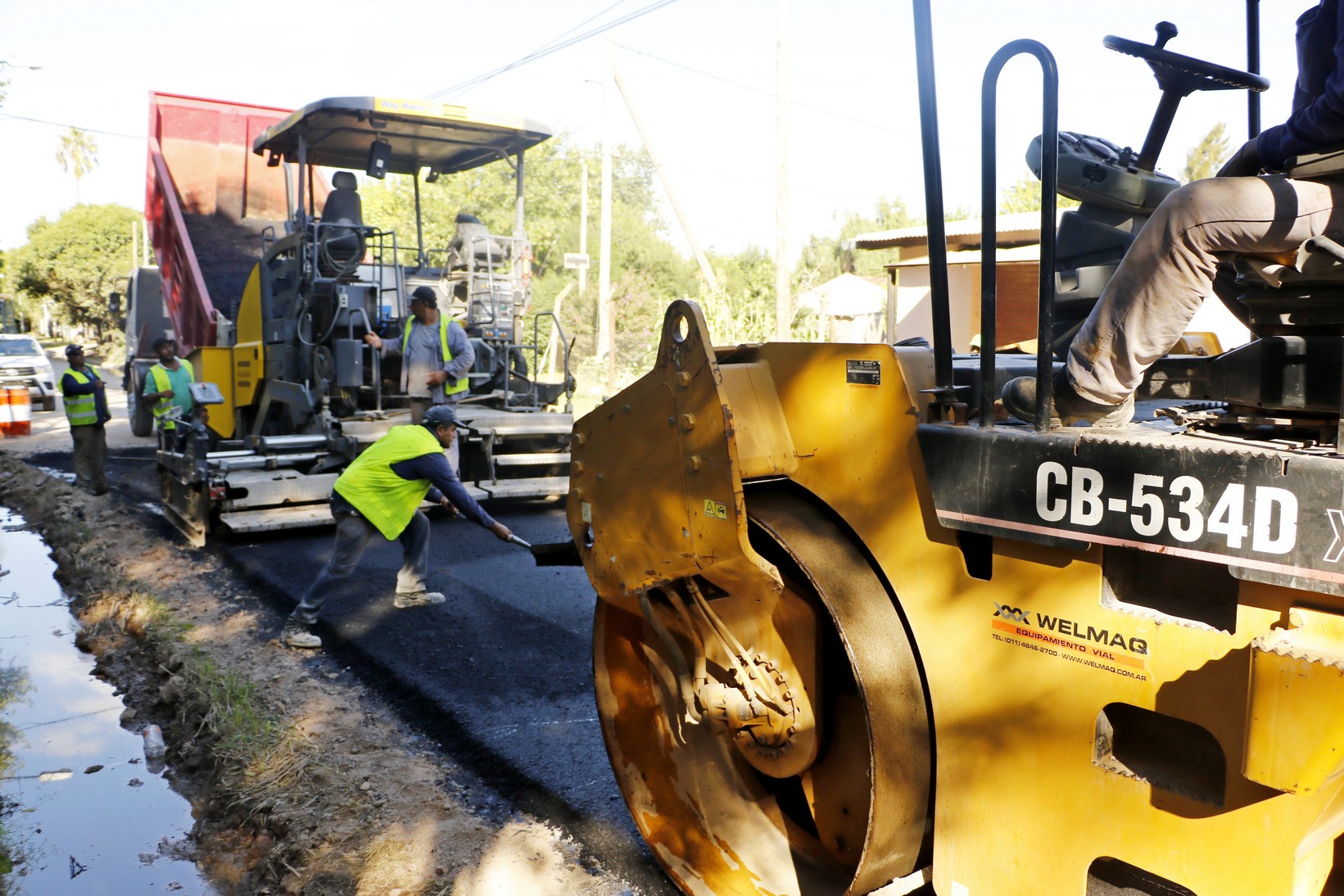 El intendente Nicolás Ducoté recorrió las obras de asfalto que se realizan sobre la calle Suecia, en el barrio Toro de Derqui.