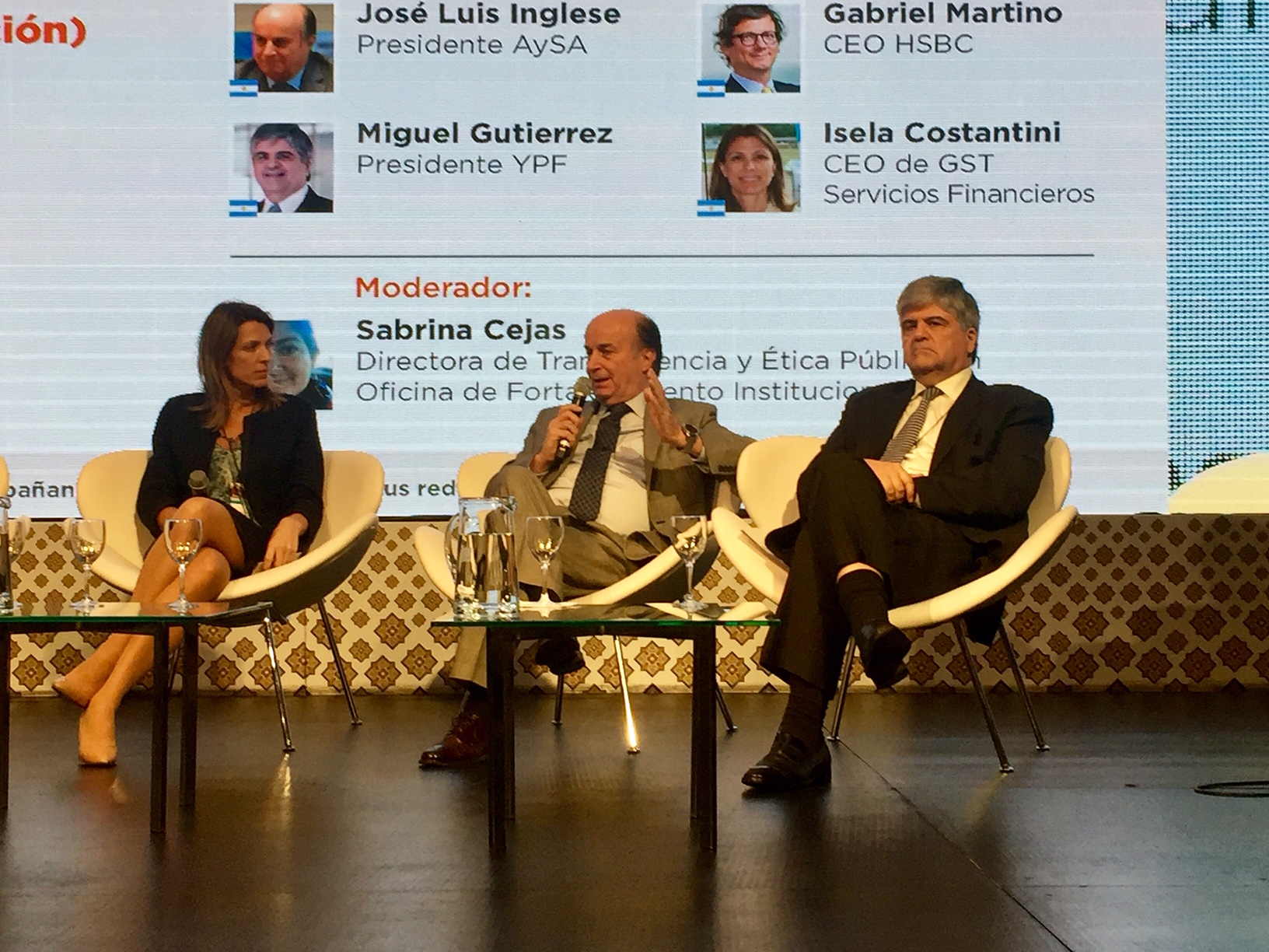 En la foto que encabeza esta nota se encuentran de izq. a der.: Isela Costantini, CEO de GST Servicios Financieros; José Luis Inglese, presidente de AySA y Miguel Gutiérrez, presidente de YPF durante el congreso realizado en el Palacio de las Aguas Corrientes.
