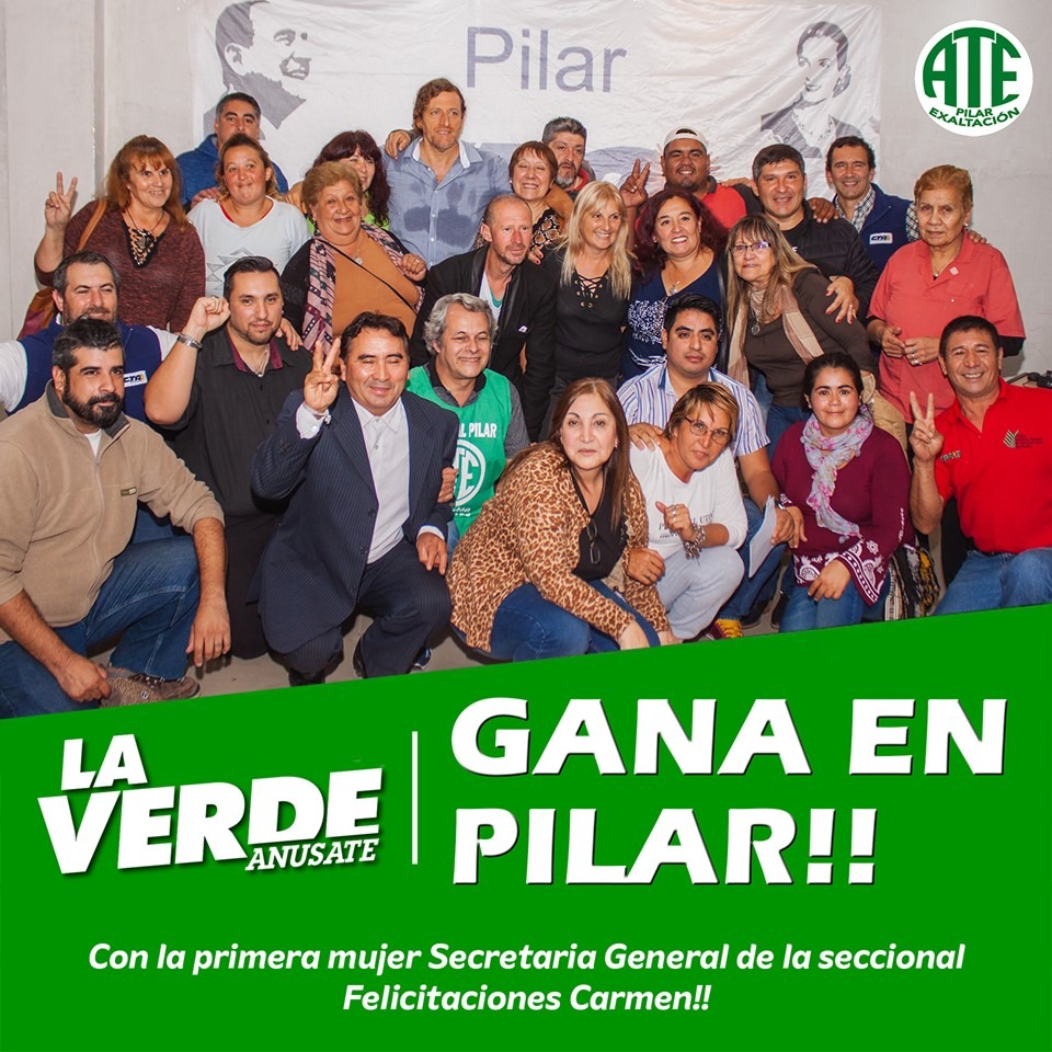 El gremio de los estatales eligió autoridades. En Pilar ganó la lista Verde Asunate y en noviembre asume como Secretaria General Carmen Pierce, Oscar Radaelli será su secretario adjunto.