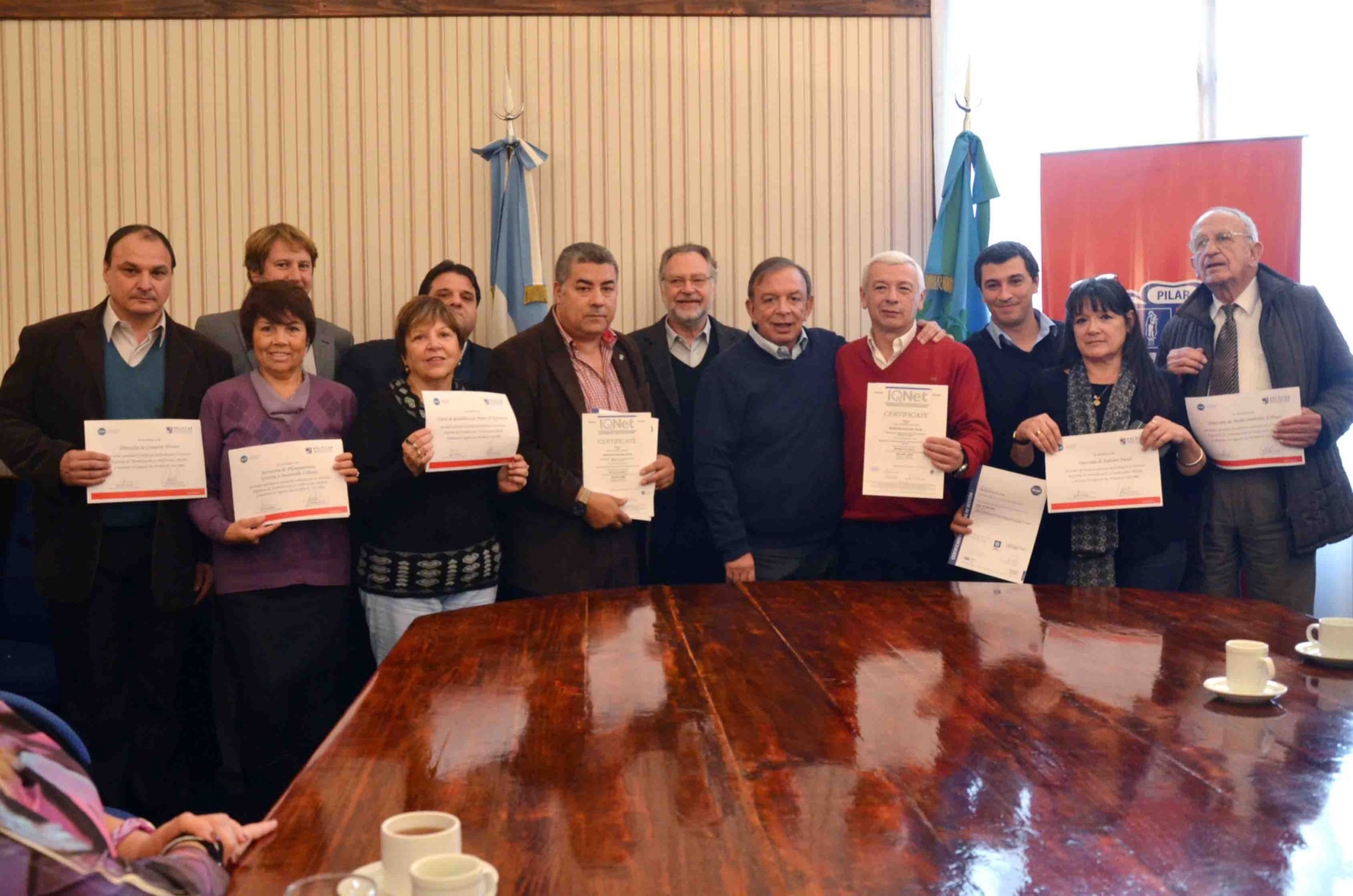 IRAM –ISO 9001 a distintas áreas de la Municipalidad del Pilar. Por un lado, se hizo entrega de este certificado a la Dirección General de Informática, que lo obtiene por primera vez. Por otro, la Dirección de Coordinación de Inspecciones y la Dirección de Licencias de Conducir obtuvieron la reválida de sus certificados. Y además, la Secretaría de Planeamiento, Gestión y Desarrollo Urbano; la Dirección de Planeamiento; la Dirección de Turismo Social; la Dirección de Catastro Técnico; el Centro de Rehabilitación Pilares de Esperanza y la Dirección de Medio Ambiente aprobaron la auditoría y, al tener su certificado en vigencia, se les hizo entrega de un reconocimiento municipal. En sus palabras, el Dr. Zúccaro recordó que “en 2004 le encomendé a Germán Treuer, director de Calidad, que inicie los procesos para que Pilar pueda destacarse en la materia. Gestionar tiene que ver con accionar iniciativas hacia donde queremos dirigir nuestra comuna y que repercuta directamente en la calidad de vida de los vecinos “Con este panorama, con nuevas áreas certificando y otras revalidando su certificado, evidentemente demostramos que vamos por el buen camino. Las verdaderas políticas de estado se tienen que basar en brindar mejoras y mayores servicios a los pilarenses”, finalizó el jefe comunal. Por su parte, el titular del Instituto Argentino de Normalización y Certificación, ing., Ernesto Kerner, expresó que “desde el principio estoy trabajando codo a codo en Pilar. Antes, hablar de calidad en la gestión pública generaba prejuicios. Hoy, este municipio es pionero en este sentido”. Además, destacó que “lograr la certificación es fácil, lo difícil es sostenerlo en el tiempo. Pilar lo logró porque lo estableció como una decisión política, y en la actualidad está encaminada a la obtención del Premio Nacional a la Calidad”. Antes de la entrega de los certificados, el Secretario de Gobierno, Pablo Martínez, felicitó a los participantes y afirmó que “este tipo de acciones resaltan la importancia que tiene el Estado en que las distintas dependencias generen capacitación constante para sus empleados”. Se trata de una norma internacional que se centra en todos los elementos de administración de calidad con los que una institución debe contar para tener un sistema efectivo que le permita administrar y mejorar la calidad de sus servicios. Se debe cumplir una serie de requisitos de gestión como contar con un plan de capacitación para el personal, tener en claro qué expectativas tienen los usuarios de su servicio y la forma de cumplirlas, hacer encuestas para verificar la satisfacción de los usuarios, contar con instructivos de trabajo, plantearse objetivos de gestión, tener un orden administrativo, contar con un libro de quejas y analizar periódicamente los resultados de los puntos anteriores para poder seguir mejorando día a día. Con la entrega que se realizó hoy, el municipio de Pilar continúa consolidándose como un pionero en la materia. ]]>