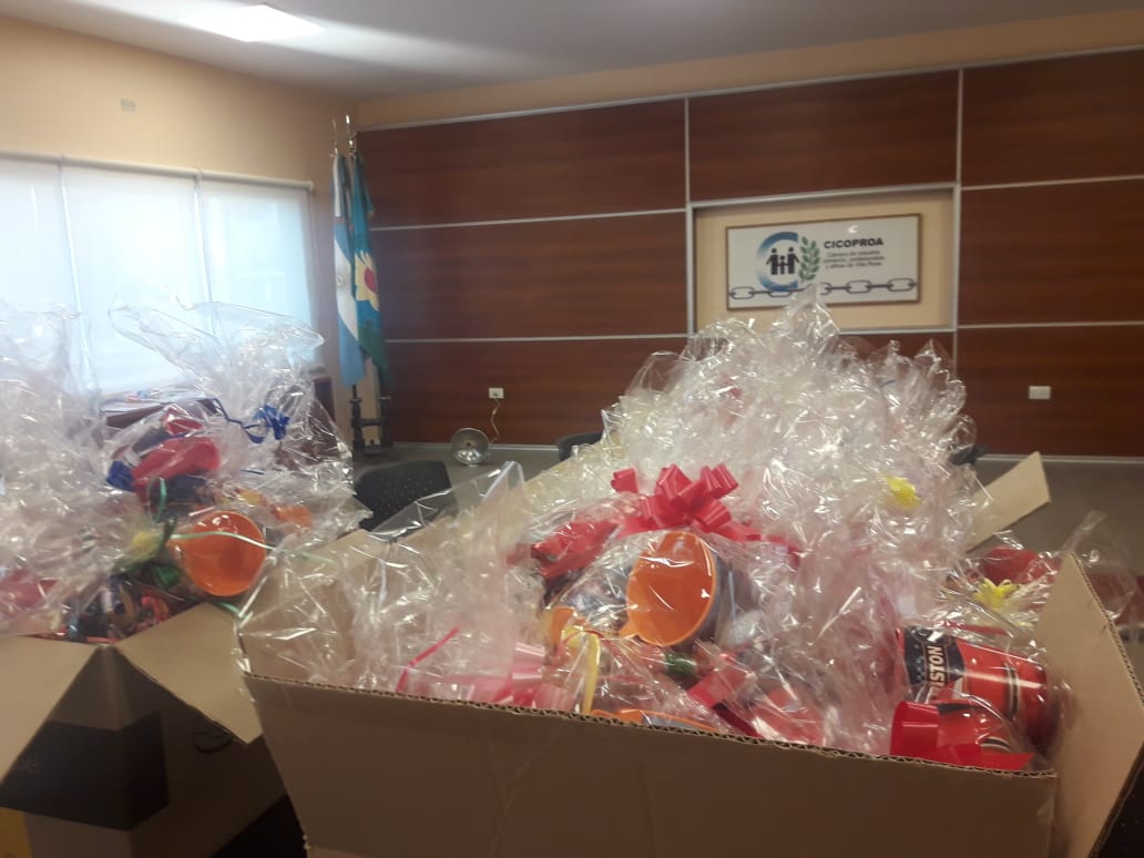 La Cámara de Industria, Comercio, Profesionales y Afines de Pilar (CICOPROA) entregó a domicilio regalos a los chicos por el Día del Niño.
