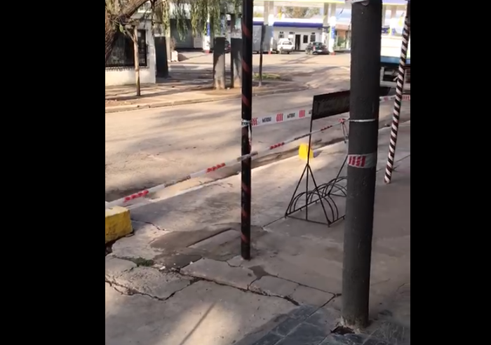 Comerciantes de Los Cachorros nos enviaron las imágenes de las cintas que colocó la Municipalidad de Pilar en las veredas del centro comercial para fomentar el distanciamiento en las veredas.