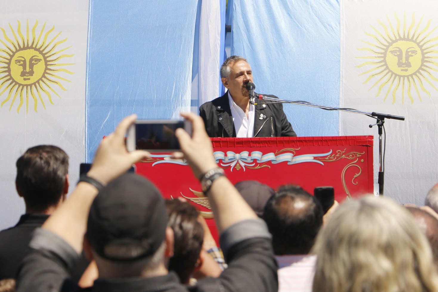 Por su parte, Lerner, vecino del distrito, recibió una placa en la que se lo distingue como Ciudadano Ilustre de Pilar. Luego cantó, acompañado por el piano, la canción dedicada a los ex combatientes.