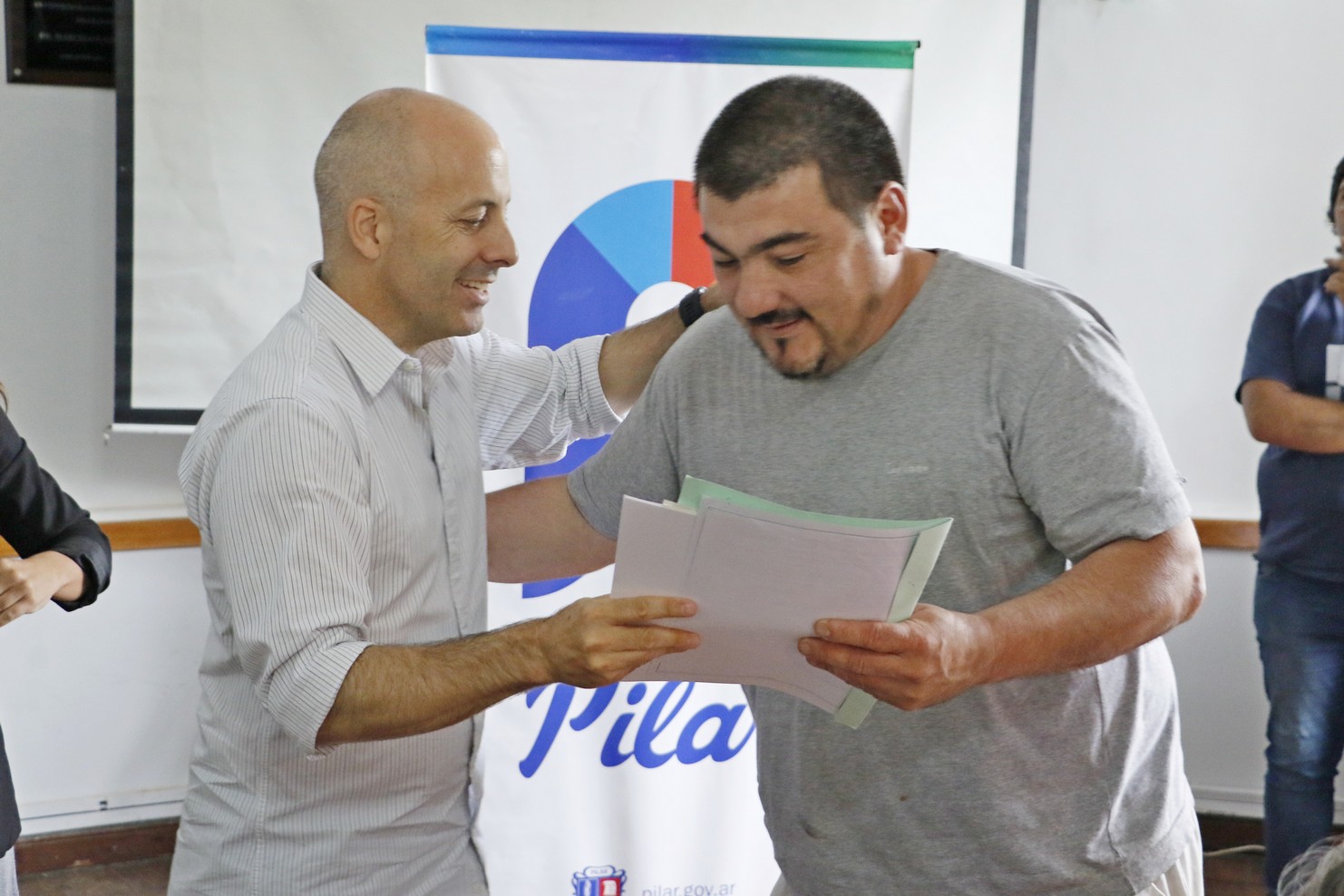 El Intendente Nicolás Ducoté participó hoy de la entrega de 30 Certificados de Protección de Vivienda Familiar a vecinos pilarenses.