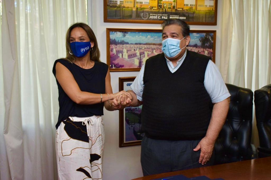 La Presidenta de AySA, Malena Galmarini se reunió con el intendente de José C. Paz, Mario Ishii para llevar a cabo la firma del convenio de transferencia, rehabilitación y posterior operación por parte de AySA de dos Plantas Depuradoras de líquidos cloacales, Del Centro y Pantaleo, ubicadas en el partido de José C. Paz.