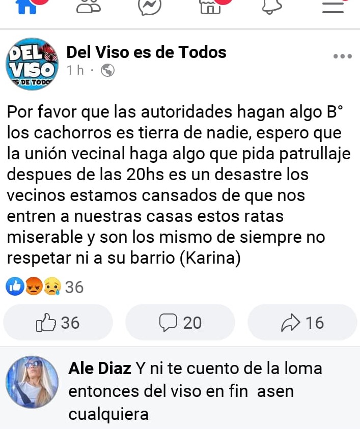 Uno de los vecinos , Juan, explicó la situación: “Estamos viviendo muchos robos. Tuvimos una reunión con las autoridades nuevas de la comisaría pero el COM desde diciembre no aparece. Estamos a la deriva. Sí patrullan a la Guardia Urbana que tira agua con lavandina. Pero a los vecinos no. De vez en cuando vemos un patrullero de la Policía Bonaerense. Pero tienen un sólo móvil. El Comando, cero, no tenemos respuestas. Lo que hoy estamos viviendo no lo vimos nunca, con dos o tres robos por día. El municipio está ausente”.