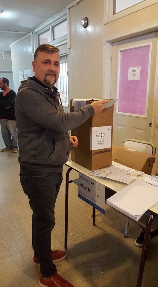 El primer precandidato a concejal lista 8 de Unidad Ciudadana votó en la Escuela 44 de Los Cachorros.