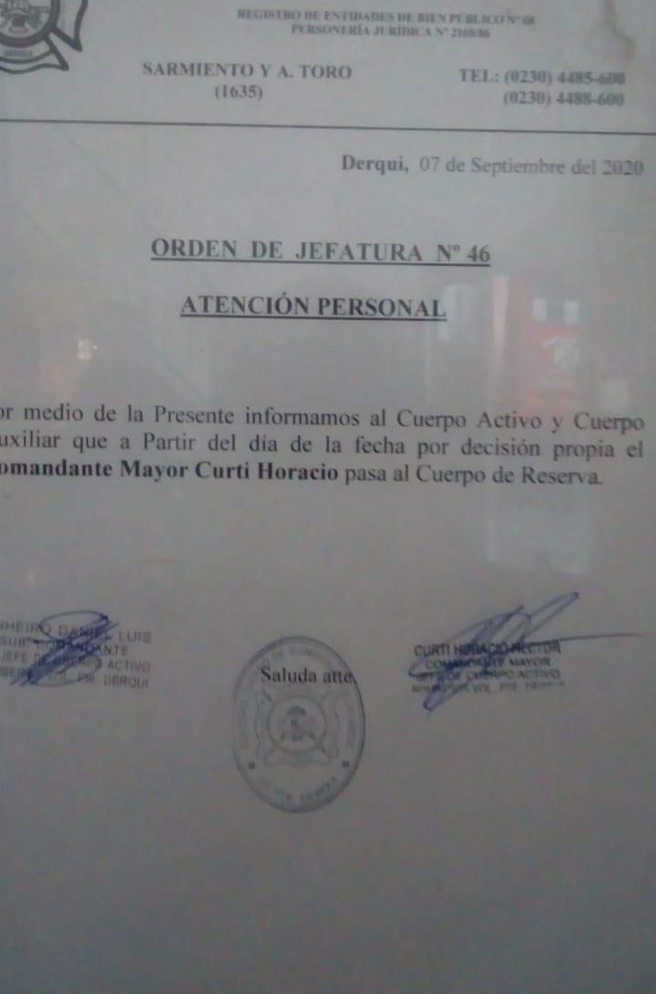 En su cargo quedó momentáneamente quien estaba en segundo lugar, Daniel Piñeiro. El miércoles se reunirán en el Cuartel para evaluar como continuarán con las tareas. Por otra parte, desde la Comisión Directiva dijeron que llamarán a elecciones en las próximas semanas, ya que el mandato de la actual se termina éste mes. El presidente y la comisión directiva electa es responsable de que el cuartel funcione y que los bomberos tengan los insumos adecuados para asistir en las emergencias, administrar la entidad y comunicar sobre las acciones a los socios. De esta manera, se espera recomponer la situación en esta institución tan valiosa. Vecinos de Derqui y ex bomberos reclaman que permitan la inscripción de nuevos socios, denuncian que desde hace años que no las actuales autoridades no permiten hacerlo.