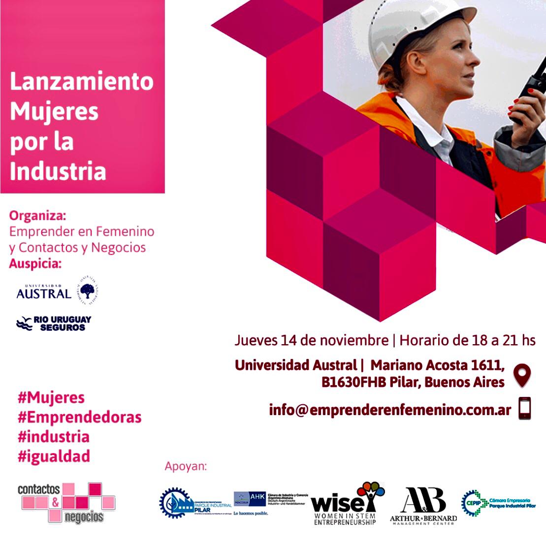 El lanzamiento de Mujeres por la Industria está auspiciado por la Universidad Austral, organizado por Contactos y Negocios y apoyado por entidades internacionales como Arthur & Bernard, la Camara de comercio Argentina Alemana y entidades locales como Scipa, (Sociedad de comerciantes, industriales y propietarios de Pilar)