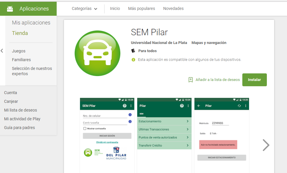 Para descargarlo y conocer más, ingresar a play.google.com/store/apps/d etails?id=ar.edu.unlp.semmobil e.pilar&hl=es.