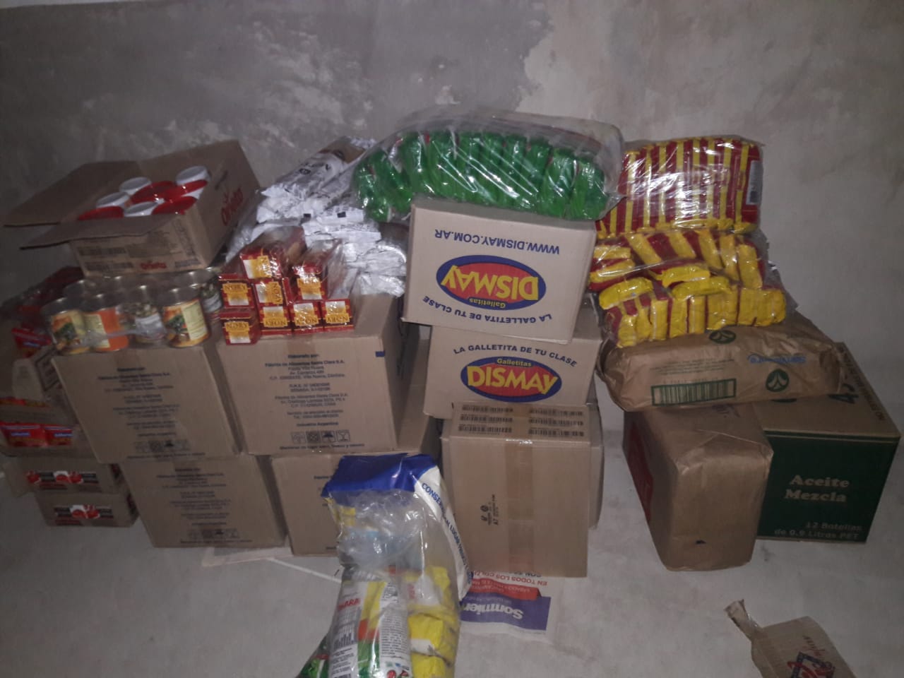 Jackeline recibió la mercadería en la puerta del merendero Carita Felíz del barrio El Manzanar de villa Rosa horas despúes de hacer público en nuestro medio que la hicieron ir hasta el «galpón municipal» en el centro de Pilar y se fue con las manos vacías.