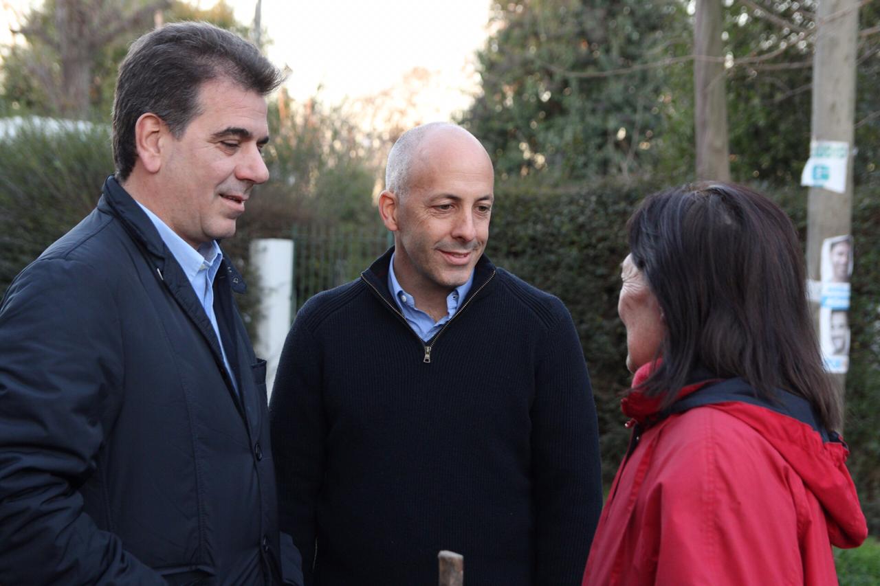 El intendente de Pilar y precandidato al cargo en el distrito, Nicolás Ducoté, y el ministro de seguridad bonaerense, y precandidato a diputado nacional, Cristian Ritondo recorrieron el barrio Solares del Norte, de la localidad de Luis Lagomarsino.