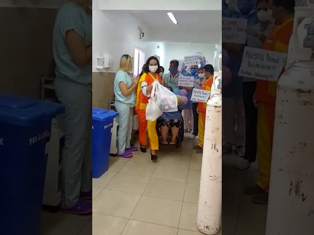 La alegria invadió el hospital Municipal Sanguinetti cuando Luisa fue dada de alta. Es la primera paciente recuperada de Covid-19 por eso todos los trabajadores del hospital celebraron con carteles y globos con Luisa que le ganó al coronavirus y vuelve a casa.